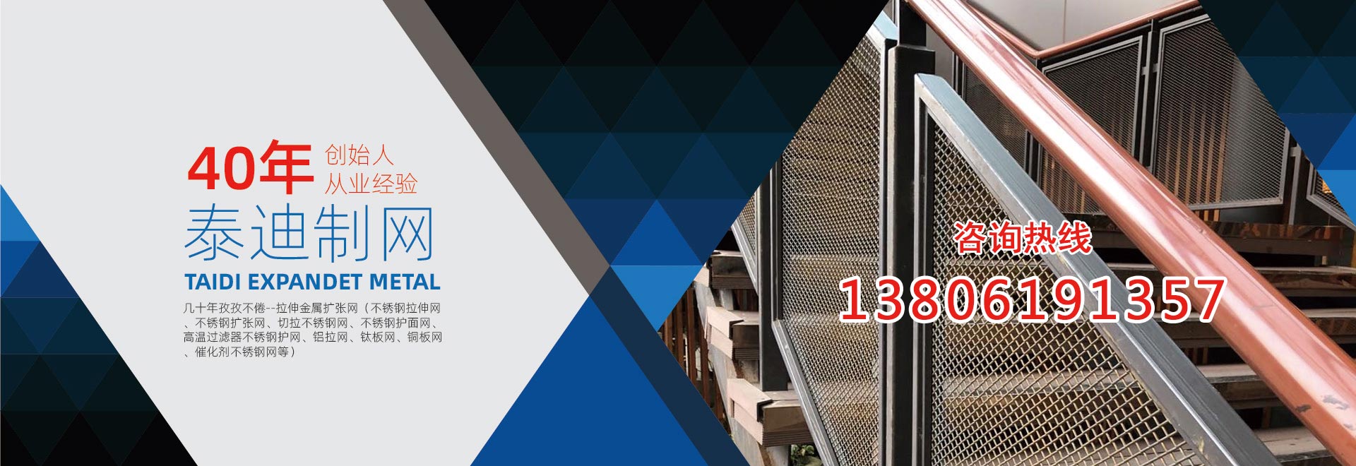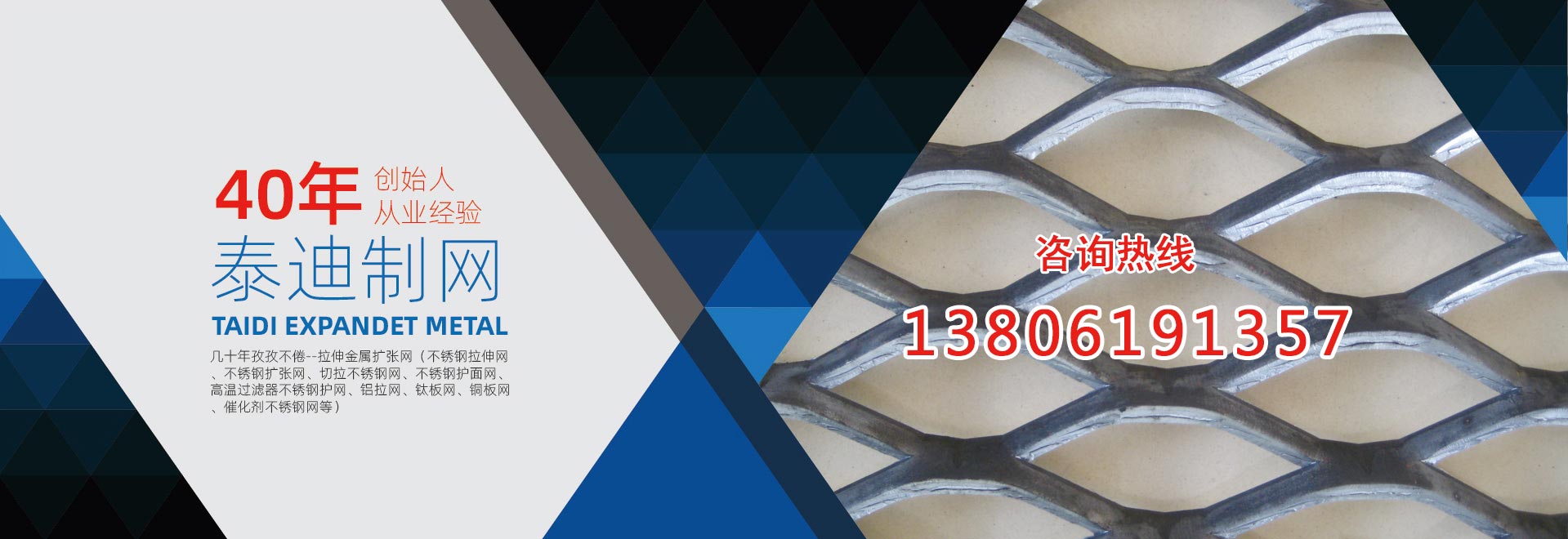 無錫泰迪環保科技有限公司,是一家專業生產金屬拉伸擴張網的企業。公司特長是:不銹鋼擴張網、拉伸擴張小孔、微孔網、奧氏體不銹鋼304、316網、超奧氏體不銹鋼網、鎳基不銹鋼的切拉擴張網生產、加工。產品包括:不銹鋼拉伸網、不銹鋼擴張網、切拉不銹鋼網、不銹鋼護面網、高溫過濾器不銹鋼護網、 板式催化劑不銹鋼網。復合針孔鋁板、針孔鋁拉網、微孔鋁板、微孔吸音鋁板、針孔吸音鋁板、微穿孔不銹鋼網、不銹鋼電池集流網、電池用不銹鋼網、鈦板網、不銹鋼板網、鎳板網、銅板網。鉛板網、超奧氏體不銹鋼板網、鎳基不銹鋼板網,鋁拉網、鋁板拉伸網、拉伸屏蔽網、不銹鋼過濾器網、不銹鋼過濾網,不銹鋼濾芯網、濾筒不銹鋼網,音箱喇叭網罩。公司前身為13年成立的無錫泰迪金屬制品有限公司。公司創始人陳正芳先生從事切拉擴張網專業四十年,公司產品在總工程師繆志明(原上海中國鋼板網廠工程師)指導下,一直保持優良品質。